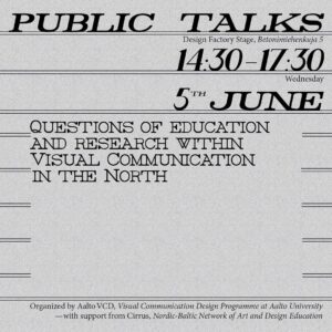 Visualizing Knowledge has been held every year since 2012 in Helsinki, Finland. It was formerly known as Tieto Näkyväksi and organized by Jonatan Hildén and Juuso Koponen from Koponen + Hildén. In 2017, the event became a part of Aalto University and is now organized by a highly motivated team of students, faculty and staff from the fields of Visual Communication and Information Design.